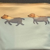 泳ぎたいと思っているヤブイヌのファスターポーチです。裏側は無地。内側には念願叶って泳いでいるヤブイヌがいます。