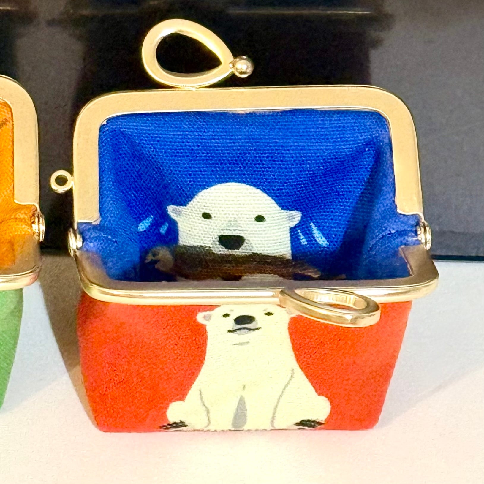 がま口を開けるとホッキョクイワナを咥えたホッキョクグマがいます