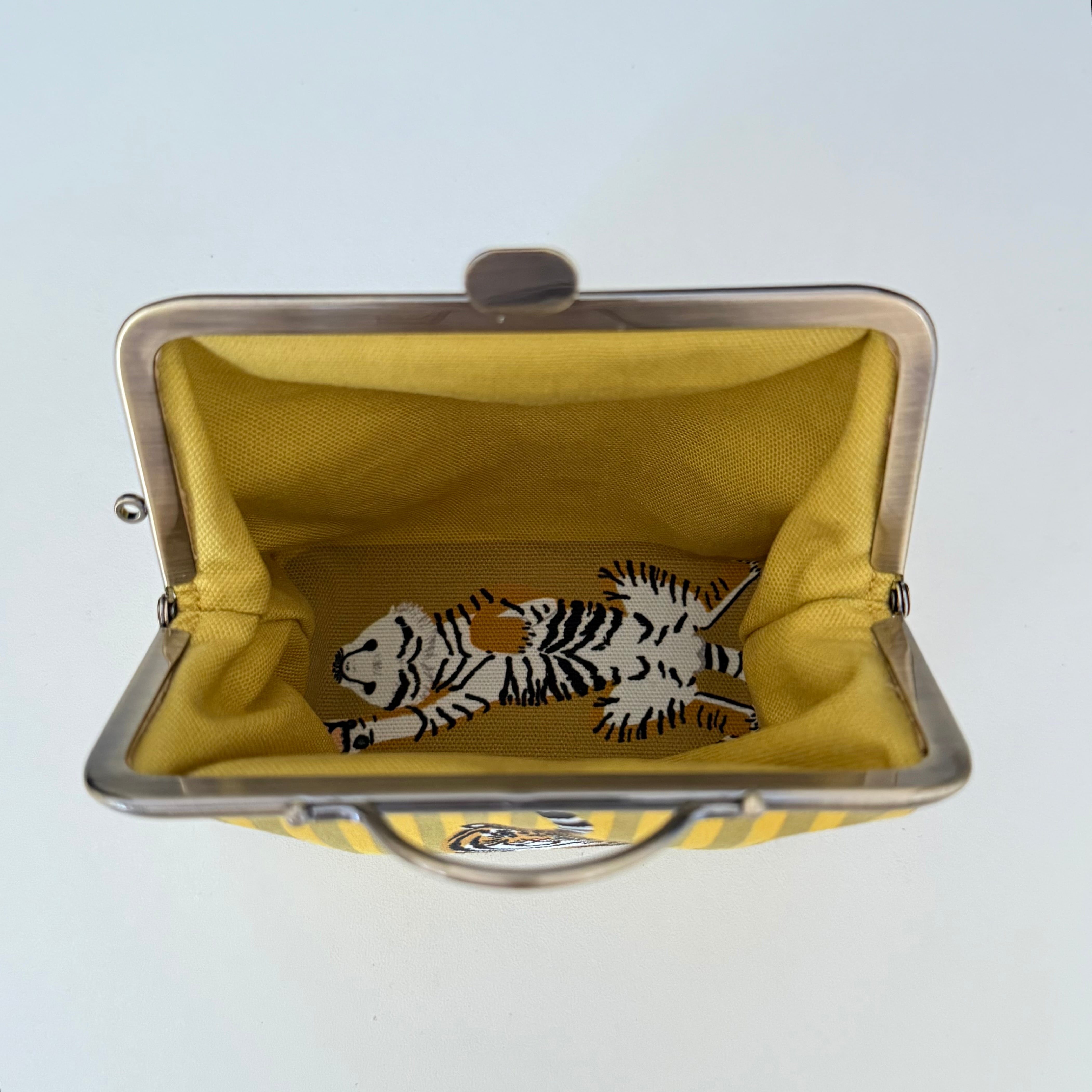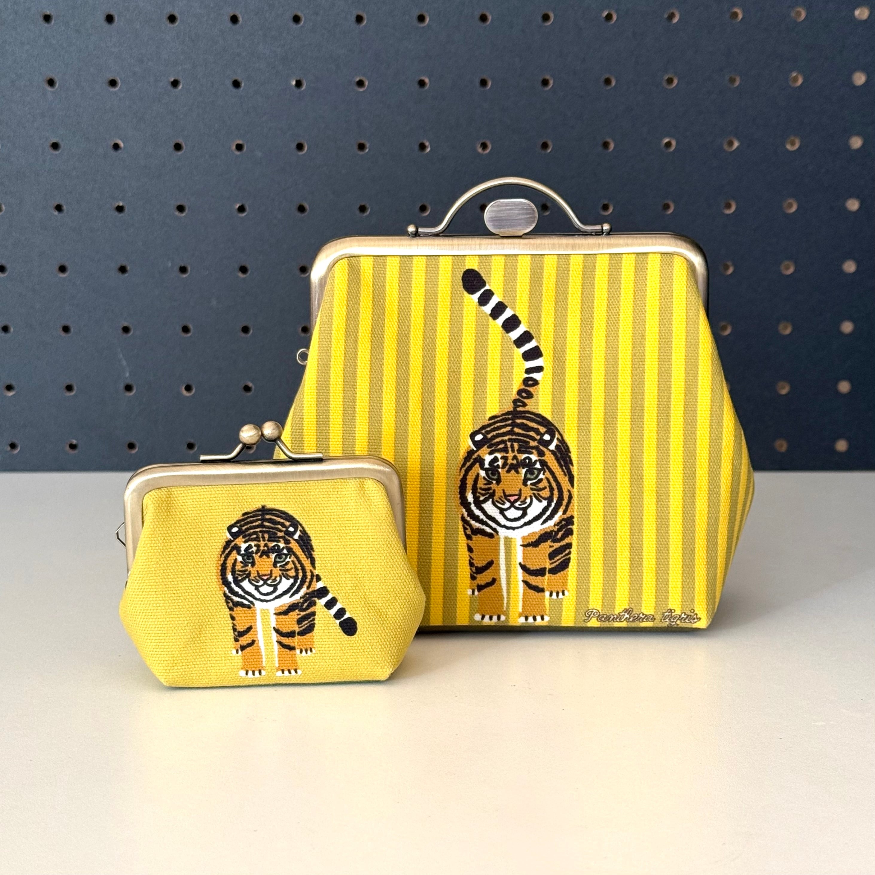 12cm角口金とオリジナルの布を使用したスマトラトラのポーチです。