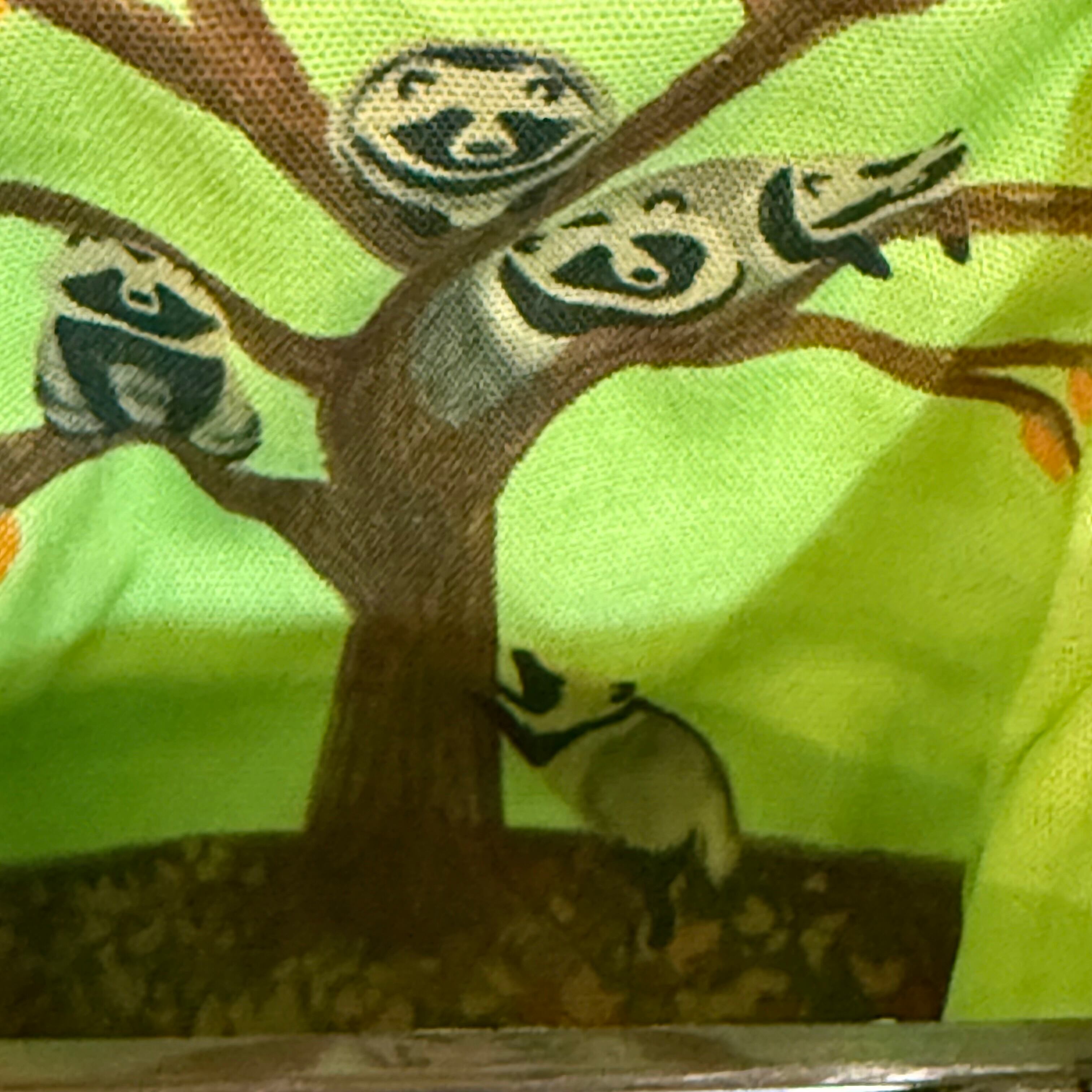 がま口を開けると柿の木に登ったタヌキたちがいます