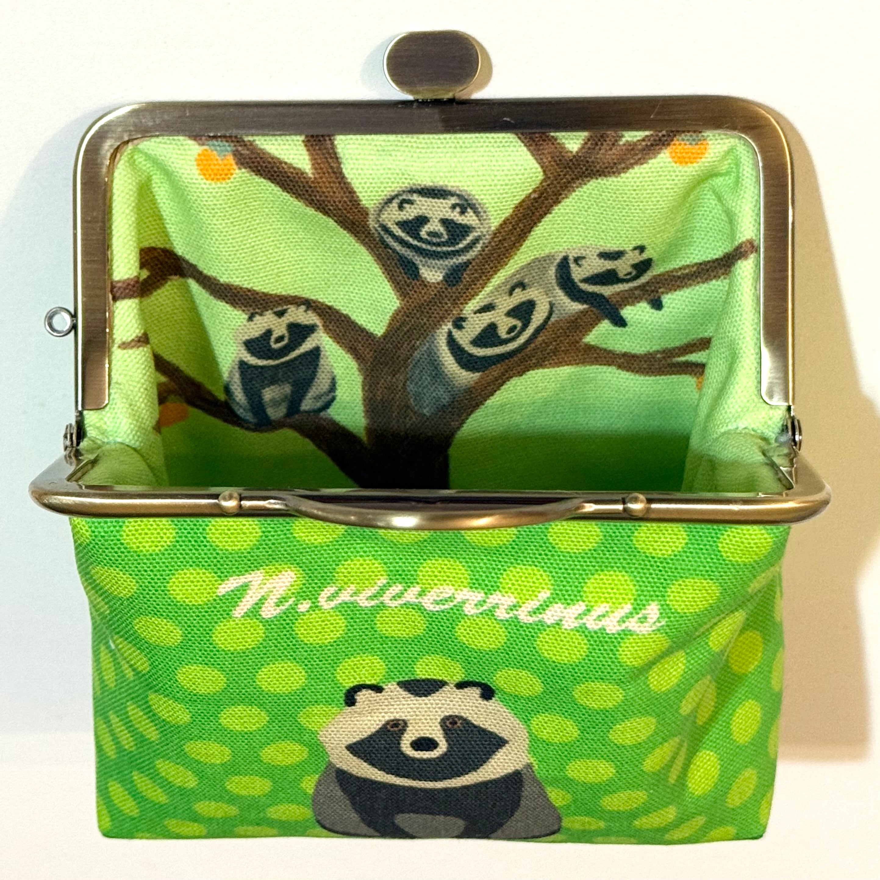 タヌキのがま口ポーチです