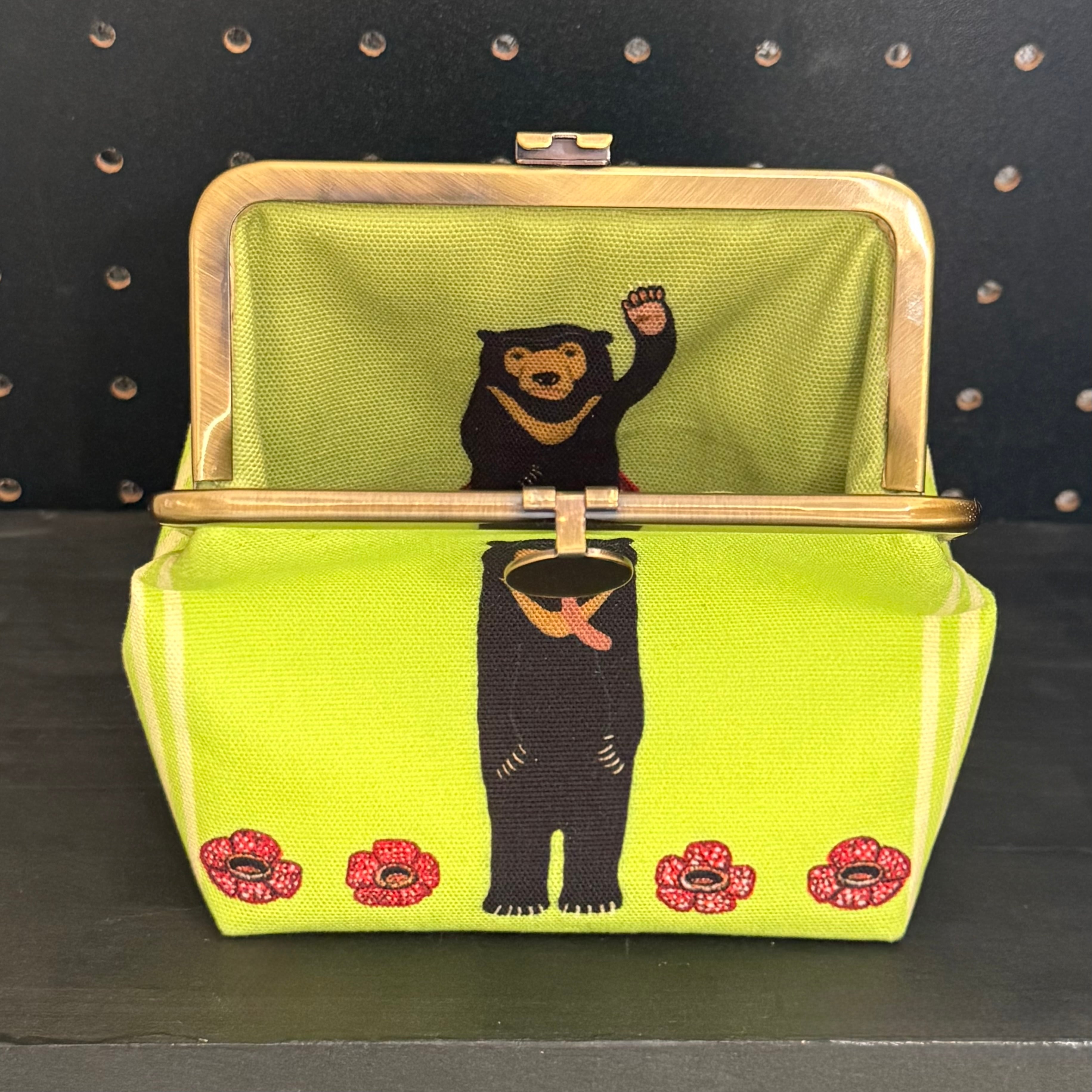 ※おこし金というタイプのがま口で、丸い金具を上に起こしてあげるとぱかっと開きます