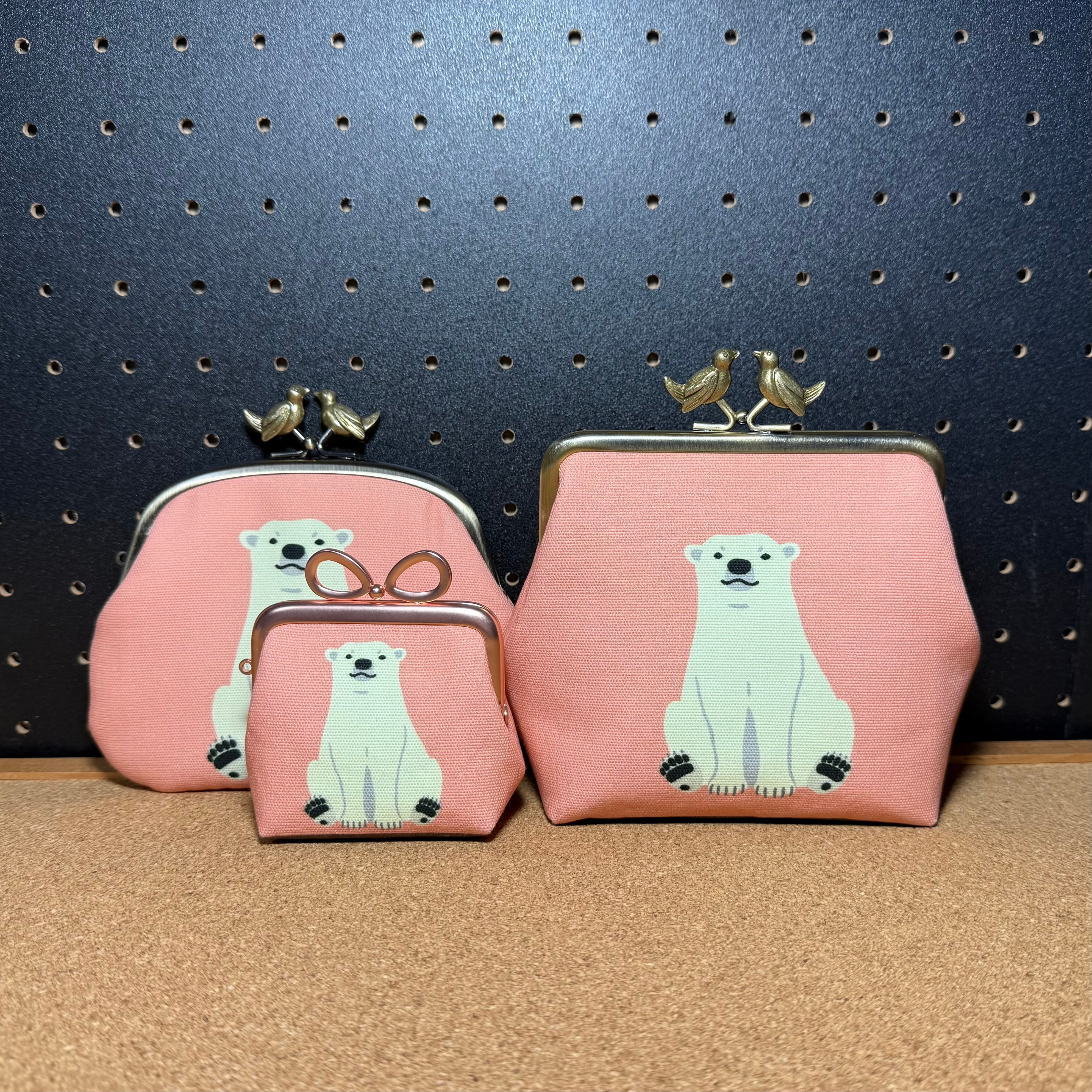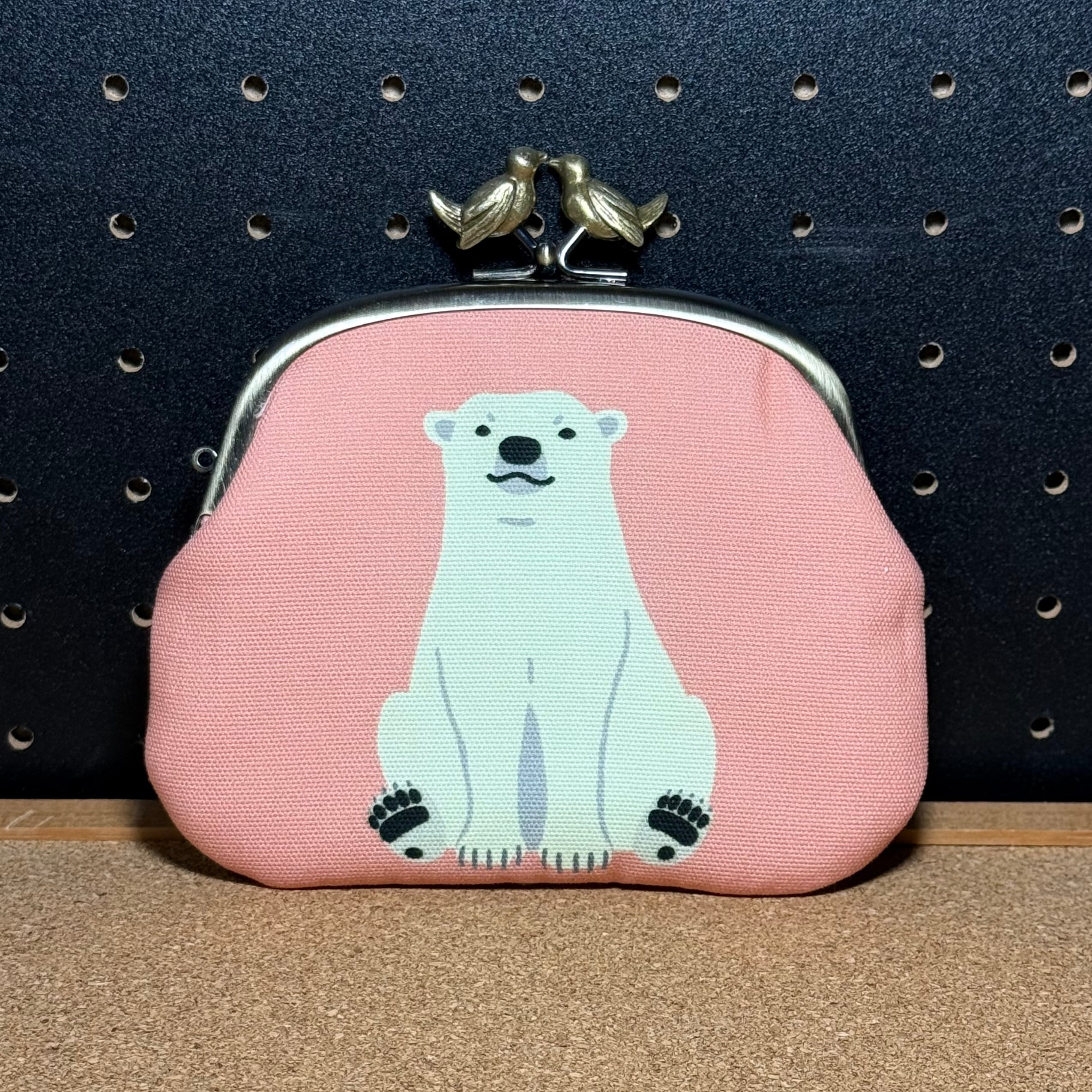 【限定品】12.5cm ぺったんこがま口 ホッキョクグマの親子(鳥)